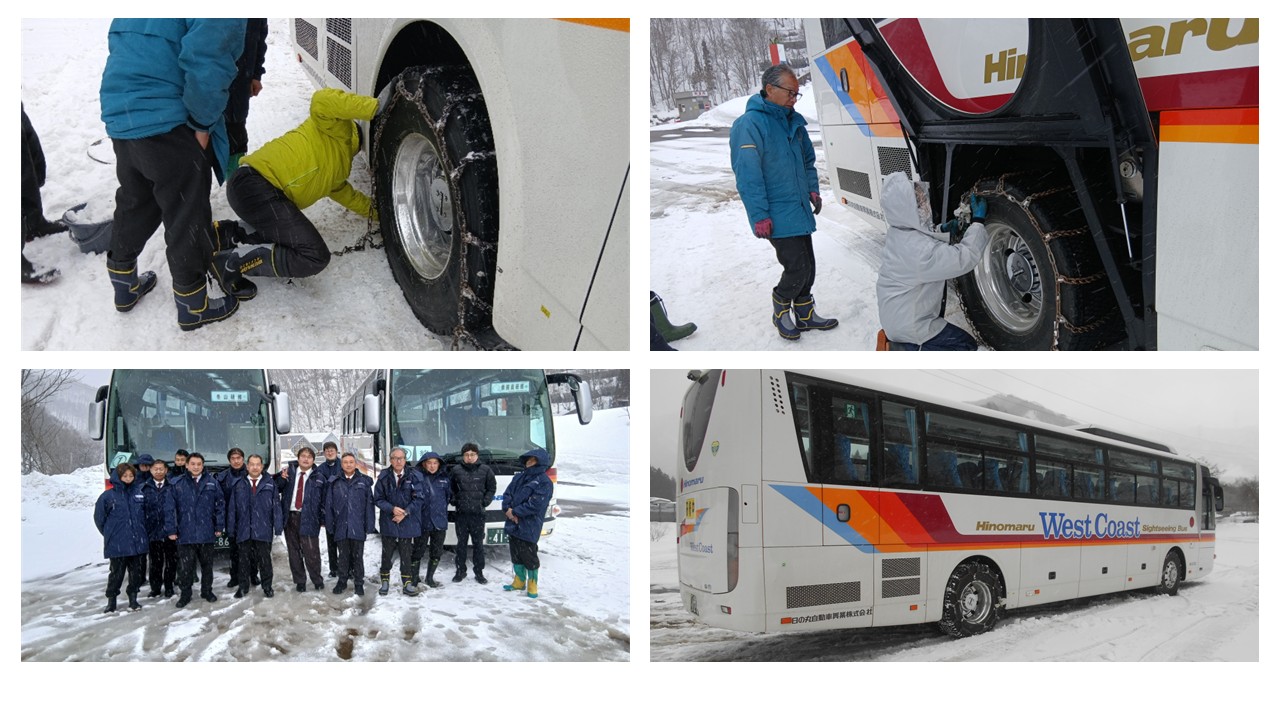 ・チェーン脱着訓練、雪道走行訓練(積雪での急ブレーキ等)